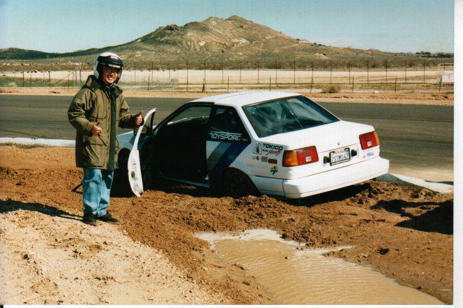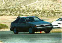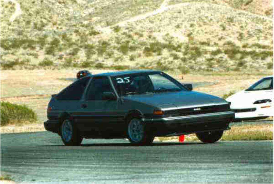 Hiro Hatada's high speed AE86...coming loose at Willow Springs.