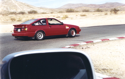 Moto-P's 4th AE86 at Willow Springs Raceway, passes one EG Civic, and approaching another EK Civic, and there you see no more in the rear view...