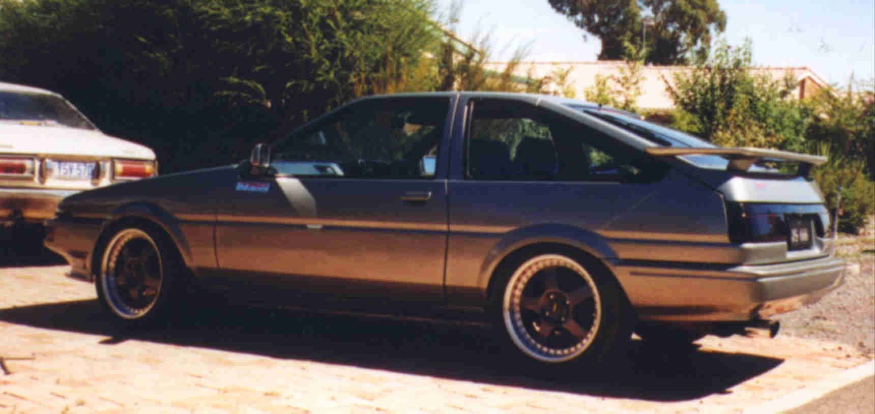 This Levin is equipped with the Ukiya turbo kit. Blue car has Ukiya GT-wing.
