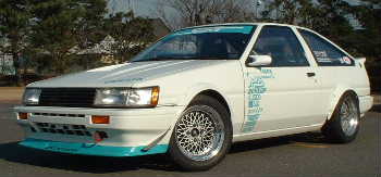 Features a 4 throttle + 16v 4A-GE motor rated at 170hp with street capable tune. Freedom ECU, and original manifold and ISCV adapter. Clad with Sprits original body kits in carbon fibre such as front lip spoiler, tail and hood. All available from Techno Pro Spirits at Techno-Pro Sprits Home page